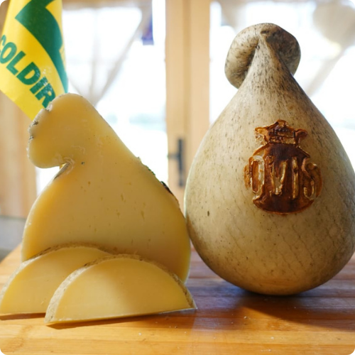 Il caciocavallo di pecora al 100% marchio registrato OVIS, frutto di attenta ricerca per offrire qualità superiore. Realizzato con latte di pecora selezionato e processo artigianale controllato, incarna l'autenticità e tradizione del nostro marchio. Ogni fetta di caciocavallo OVIS promette un gusto intenso e genuino, eccellenza lattiero-casearia.